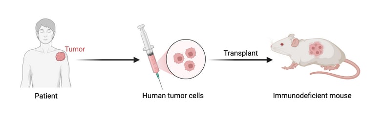Explainer box: The acronym PDX stands for Patient-Derived Xenograft. By implanting human tumor cells into mice, we can test drugs not yet approved for clinical trials on fresh human cells, in a tumor-like living environment without compromising patient safety (unfortunately, the same can't be said for the mice)